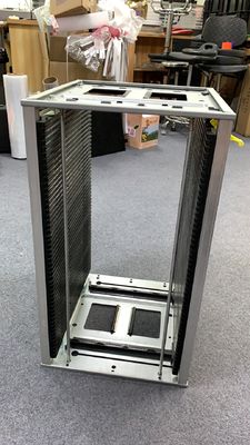 An ESD PCB magazine rack typically consists of a sturdy frame made of conductive or static-dissipative materials to prevent the buildup and discharge of static electricity that could damage sensitive electronic components on the PCBsتم تصميم الرف مع فتحات أو أقسام للحفاظ بشكل آمن على PCBs الفردية في وضع مستقيم، مما يسهل الوصول والتنظيم بسهولة أثناء عمليات التجميع والتفتيش.